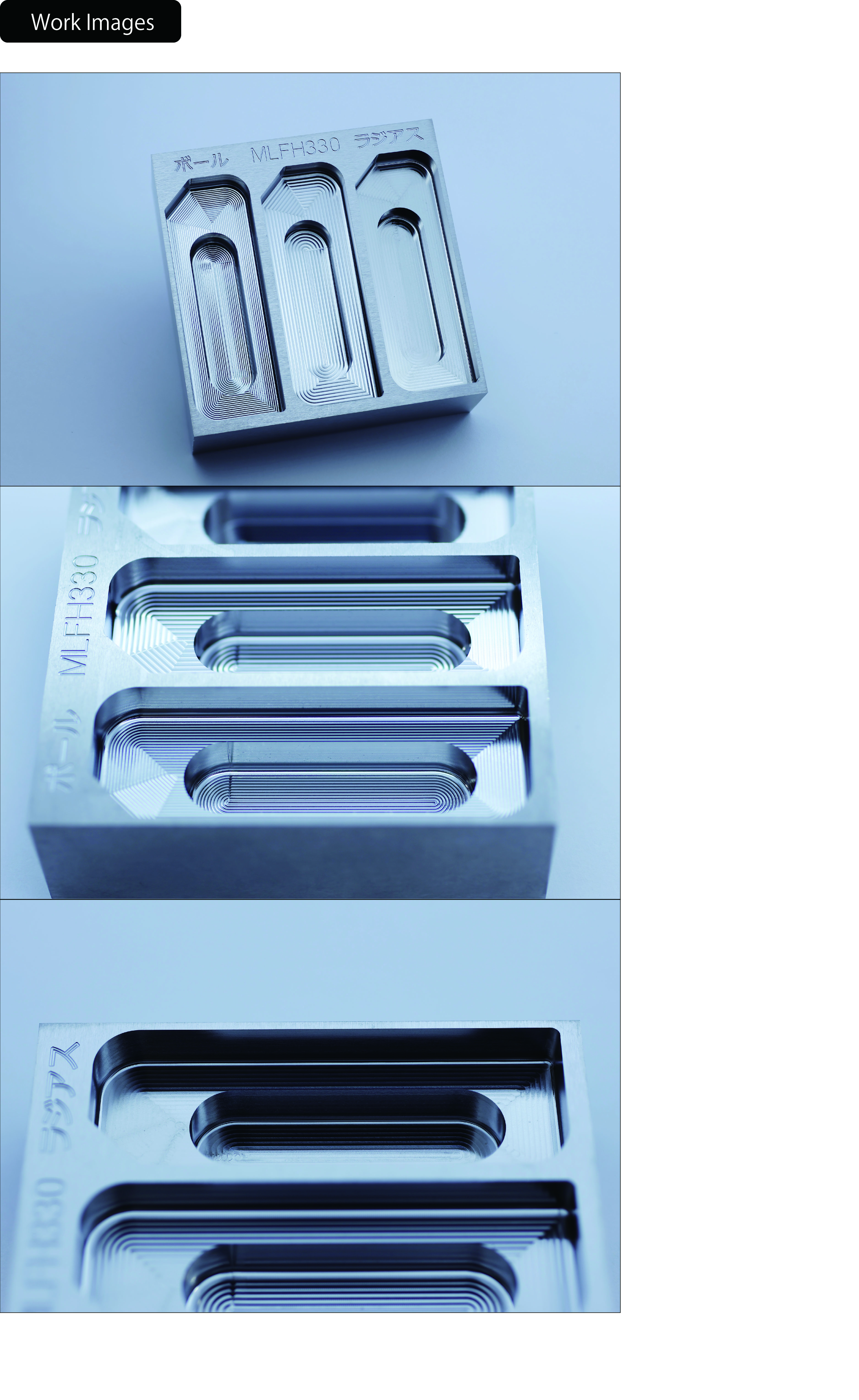 ●MUGEN COATING PREMIUM for hardened steel and unique cutting edge realize excellent chipping resistance and suppress chattering to improve finishing surface.